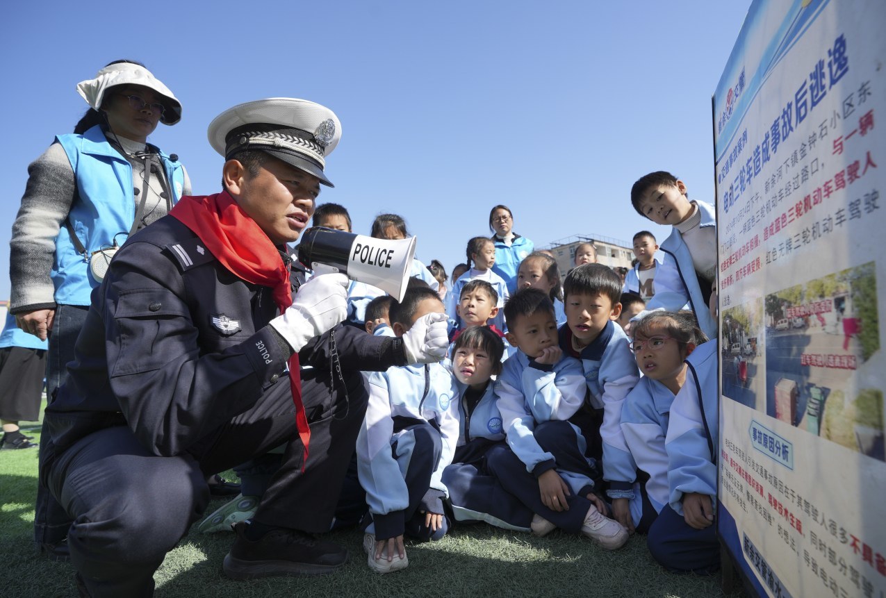 近日,市公安局交管支队民警走进燕子山小学,向师生讲解车辆盲区、“一盔一带”等安全知识和法规。“全国交通安全日”前夕,市公安局交管支队民警走进校园开展交通安全知识主题宣传活动,通过向师生讲解车辆盲区、“一盔一带”等交通安全知识和法规,增强师生交通安全防范意识,筑牢校园交通安全防线。本报记者 赵春亮摄