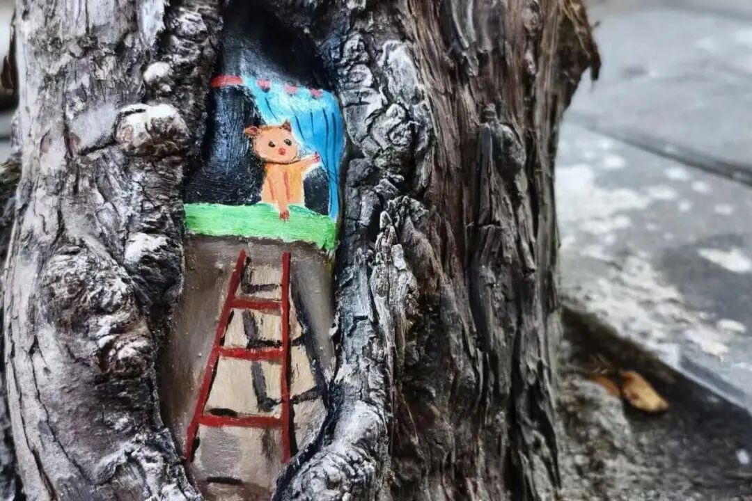 当斑驳墙面变身艺术画布,枯枝干也穿上彩色冬装,金龙岗青年艺术街区正迸发出青春活力。