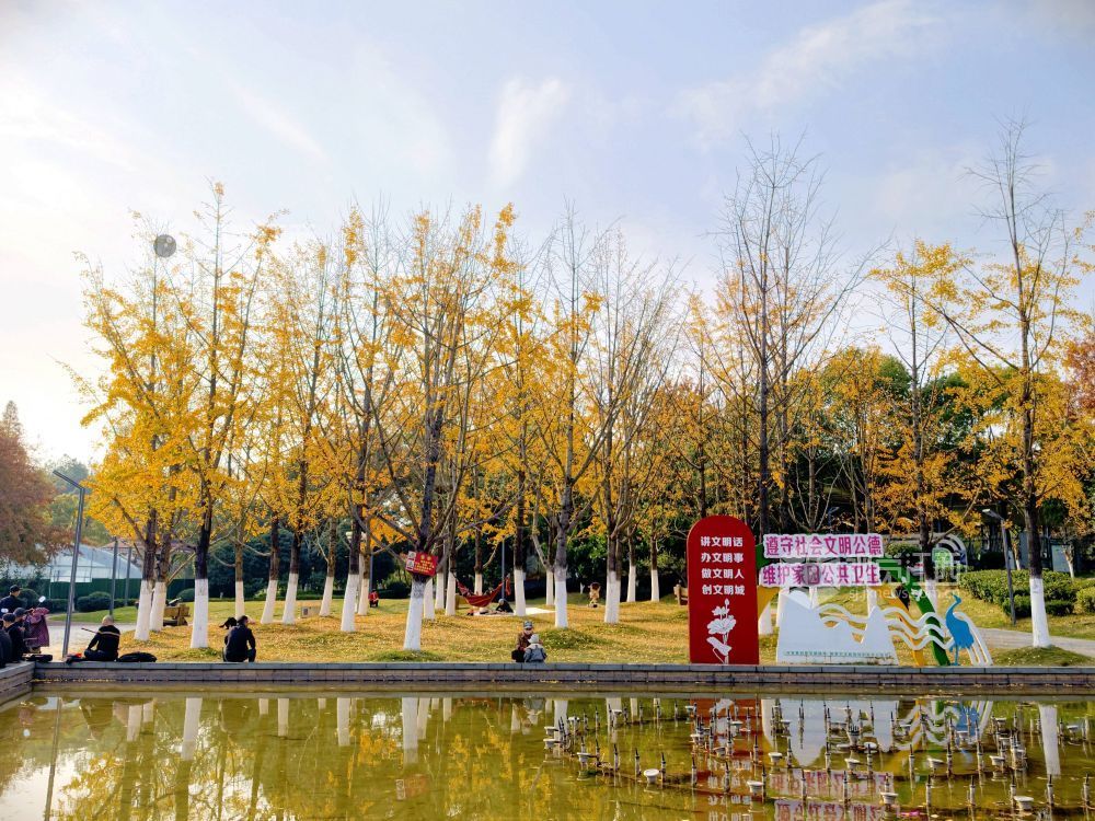12月6日,江西省分宜县钤山公园内,大小银杏树整齐排列,叶片在阳光的映照下闪烁着温暖的金色。金黄的银杏叶随风飘落,铺满地面,宛如一幅冬日油画。慕名而来的游客和市民漫步其间,或驻足拍照,或与家人在落叶间嬉戏,尽享冬天的浪漫与惬意。 视觉江西 袁建兵 摄