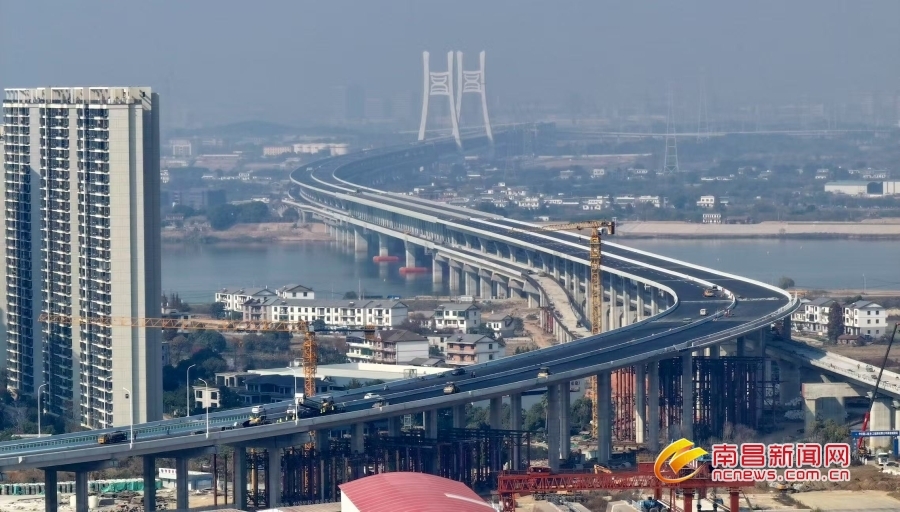 据介绍,隆兴大桥公路段线路西起英雄大道秀先路口,东至高新大道快速路,全长约10.46公里,设计时速80公里,整体分为隆兴大桥下庄湖桥、隆兴大桥公铁合建段、隆兴大桥(南)及连接线工程。(洪观新闻记者 马悦 摄)