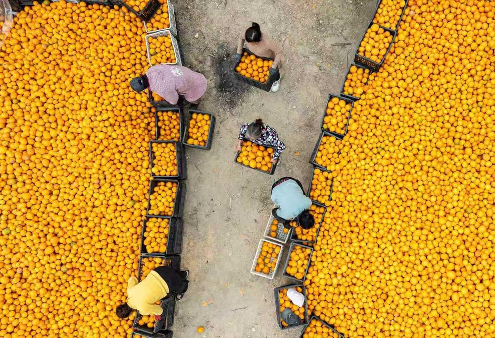 12月4日,位于袁州区寨下镇梅岭村的宜春市垚溪橙农业发展有限公司硒橙种植基地,村民在分拣硒橙。近年来,该区立足富硒资源优势,积极推进袁州硒橙产业规模化、集约化、标准化、品牌化发展,吸纳当地村民就业增收。