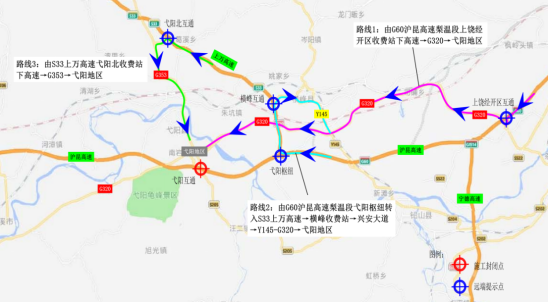路线3:由S33上万高速弋阳北收费站下高速→G353→弋阳地区。