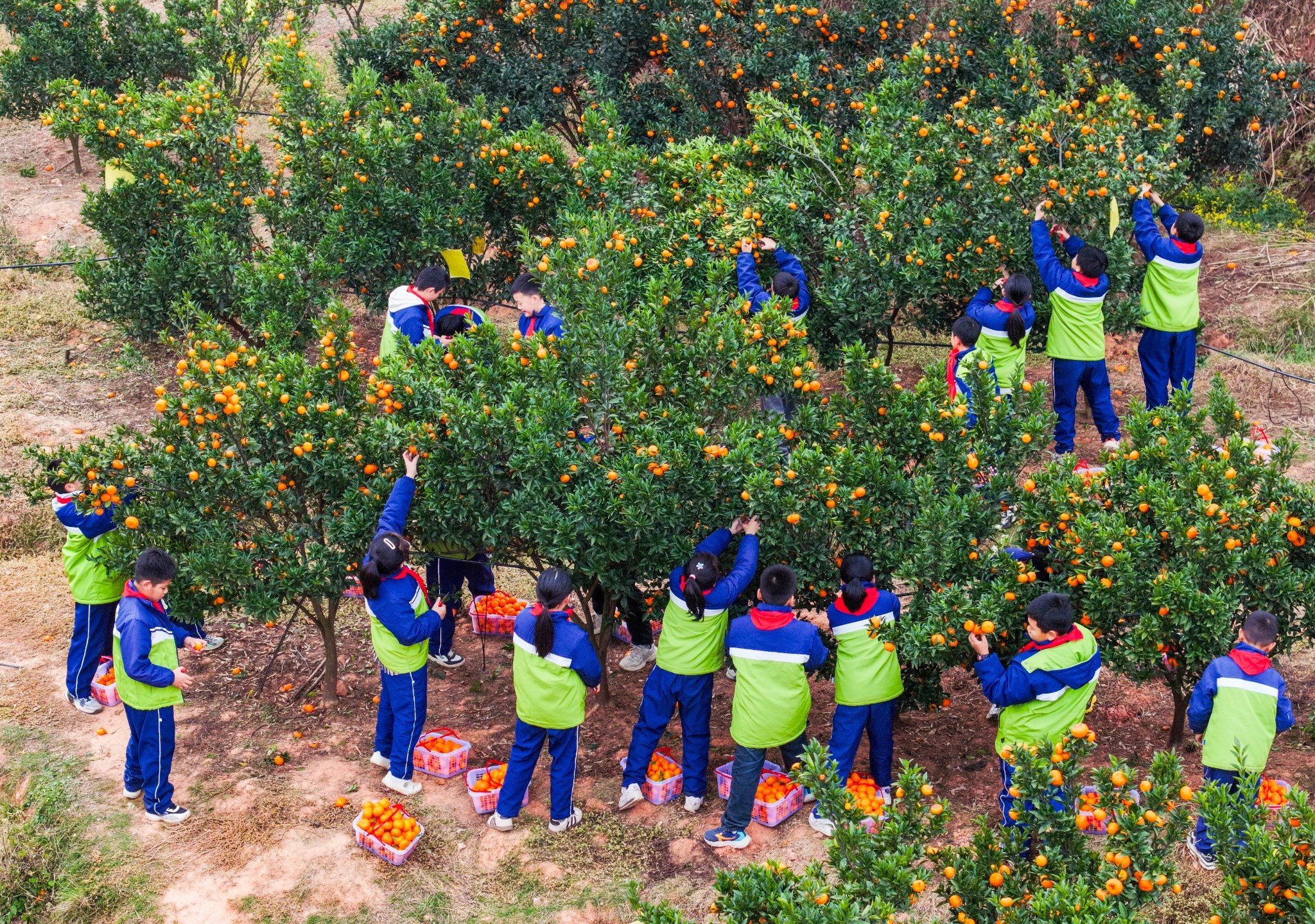 近日,南丰县子固小学把劳动课堂搬到琴城镇的橘园里,老师带领学生体验采摘蜜橘,让孩子们在劳作过程中感受丰收的喜悦和劳动的乐趣。(谢东 曾志强 摄)