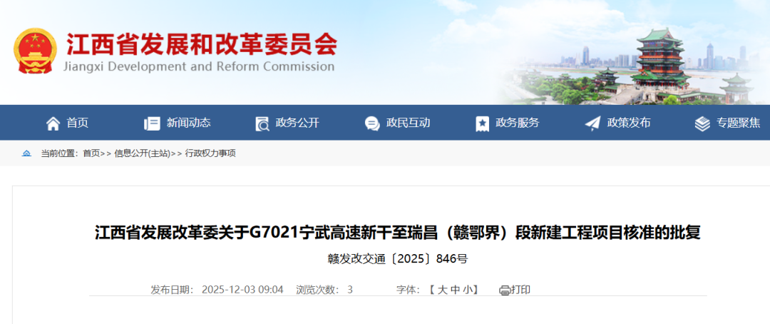 近日,我委正式批复同意建设G7021宁德至武汉高速公路新干至瑞昌(赣鄂界)段新建工程。
