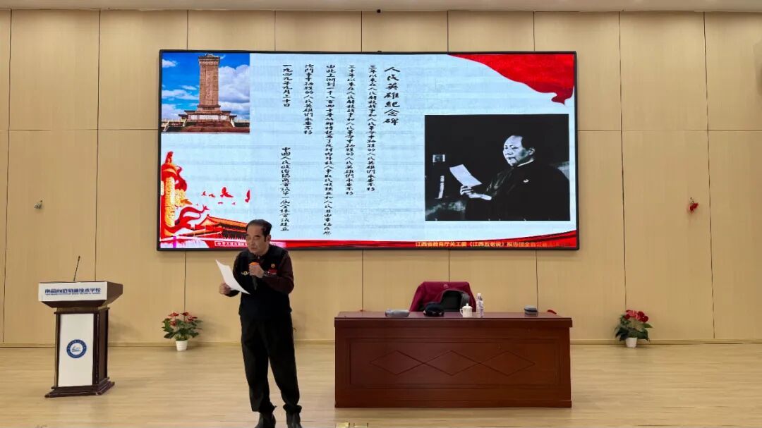 12月9日,南昌向远轨道技术学校报告厅内座无虚席,南昌市关爱报告团、南昌市教育局关爱报告团成员罗合毅以“寻红军先烈足迹,树崇高革命理想”为题开展专题宣讲,为师生带来一场浸润心灵的红色思政课,以“五老”力量引导青年学子传承红色基因、践行青春誓言。