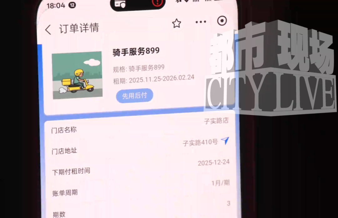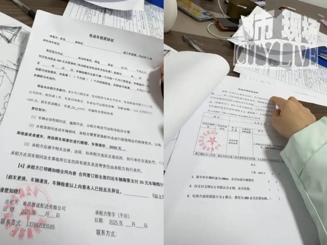 记者注意到,小严与南昌智途配送有限公司签订了电动车租赁协议,月租金899元,租期至少一个月。小严透露,公司并未直接收取租金,而是通过支付宝“拍小租”小程序完成授权。