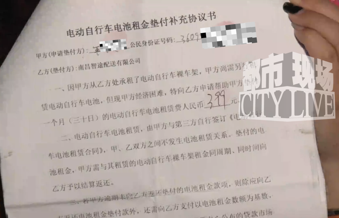 记者仔细查看后发现,这份协议并非入职劳动合同,而是由《电动车租赁协议》《电动车租金活动单》以及《电动自行车电池租金垫付补充协议》组成,内容与此前小严所签订的协议完全一致。