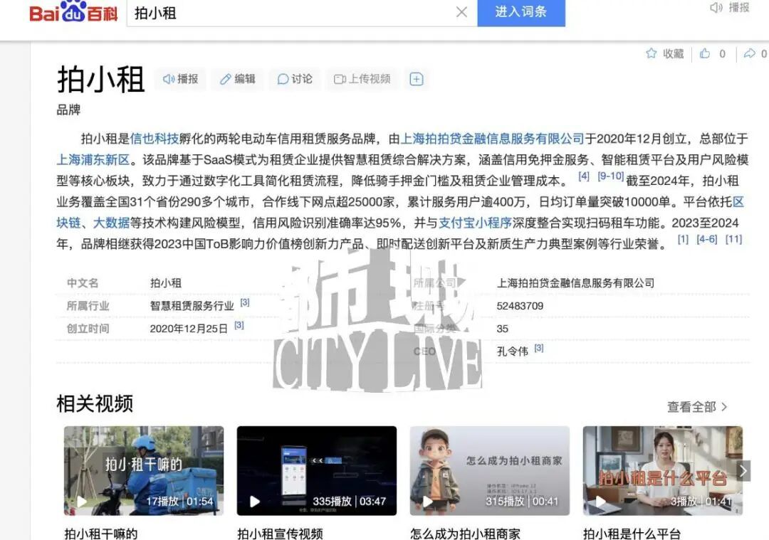 记者查询得知,“拍小租”是电动车信用租赁平台,会为商家代扣租金,使用者需按期还款。