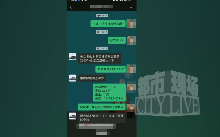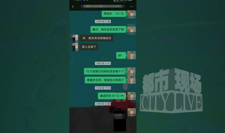 她还向都市现场记者出示了与销售人员的微信聊天记录,双方曾再次确认“13.1万元落地”,销售人员当时表示稍后会提供费用明细。