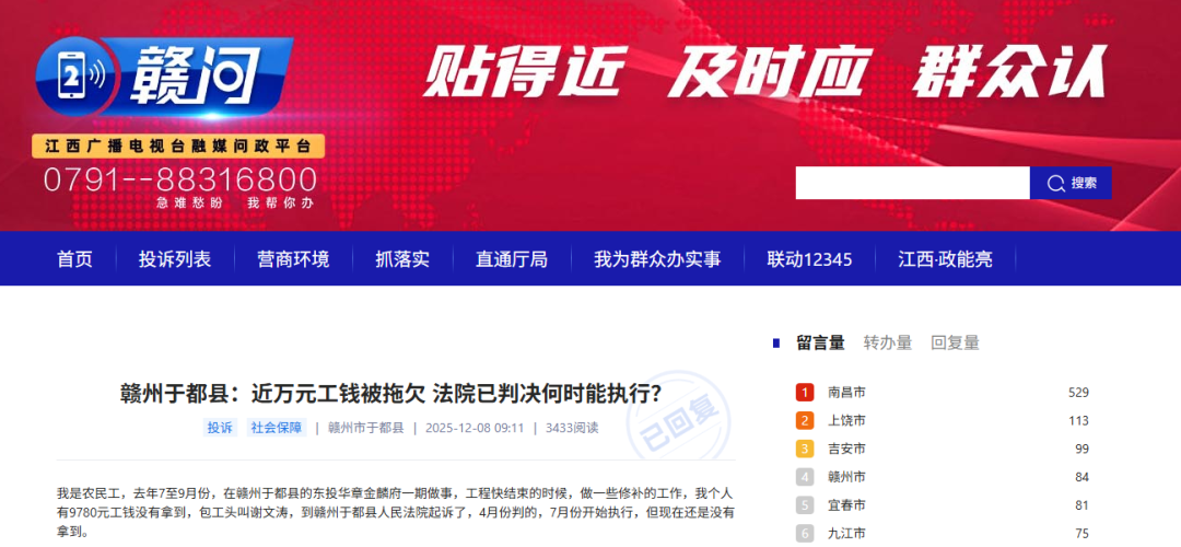 在 江西广播电视台融媒问政平台