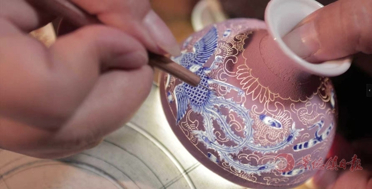 成功复烧后,朱筱平并未止步。他带领团队进驻名坊园,将胭脂红的奢华美艳融入生活器皿,不断创新装饰手法,以绣花针在釉色上扒花刻画,将沉静的青花与贵气的胭脂红完美结合,融入描金、粉彩和人物、花鸟、雪景等绘画元素……沉睡一个多世纪的胭脂红,焕发出崭新的时代活力。