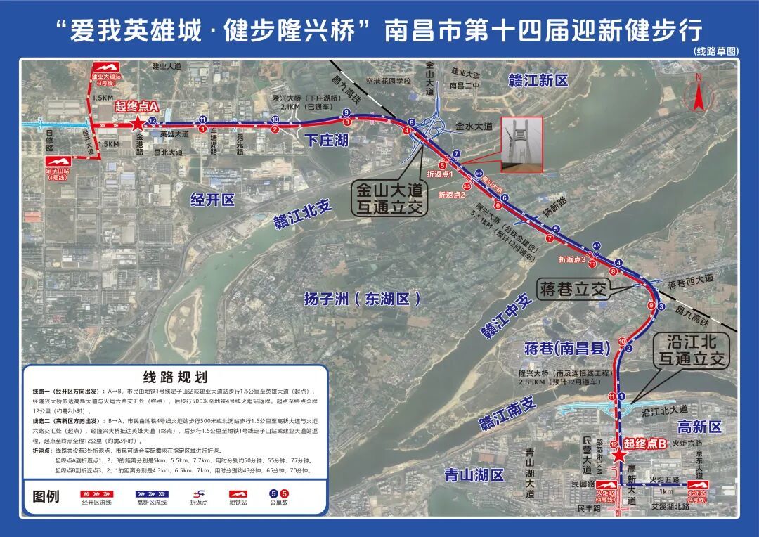 本次活动全长约12公里,总参与规模预计将突破20万人次,其中2026年元旦当天的健步行参与人数预计超过18万,将再次刷新南昌市群众性体育活动规模纪录。为提升参与舒适度与自主性,健步行线路增设三个折返点,方便参与者根据自身情况灵活安排行程。