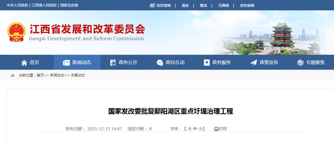 近日,国家发展改革委批复我省鄱阳湖区重点圩堤治理工程可行性研究报告。批复总投资68.5169亿元。主要建设内容包括堤防加高培厚,新建修复护坡,堤身防渗等。总工期60个月。