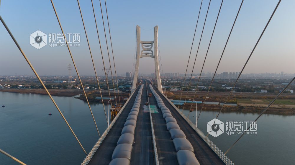 12月15日,航拍江西南昌隆兴大桥如长虹卧波横跨赣江,上下两层共12车道的桥面与竖琴型索面在阳光下熠熠生辉。这座刷新六项世界纪录的“超级桥梁”,即将成为新地标,见证英雄城发展脉动。 大江新闻 全媒体记者 徐国亮 实习生 胡怡申 摄