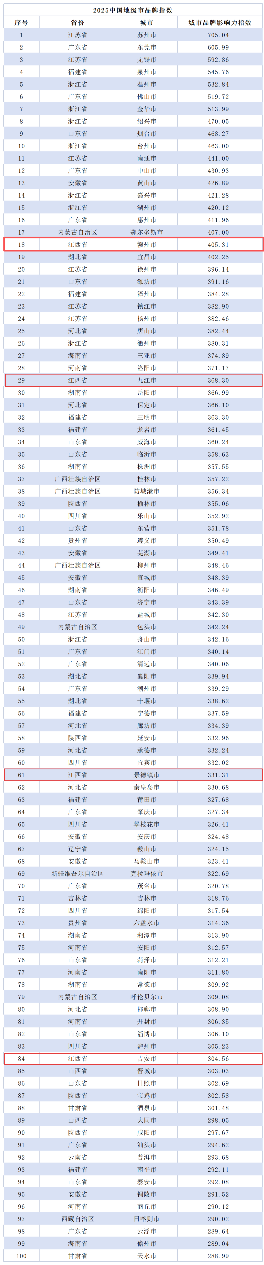 江西四城市榜上有名