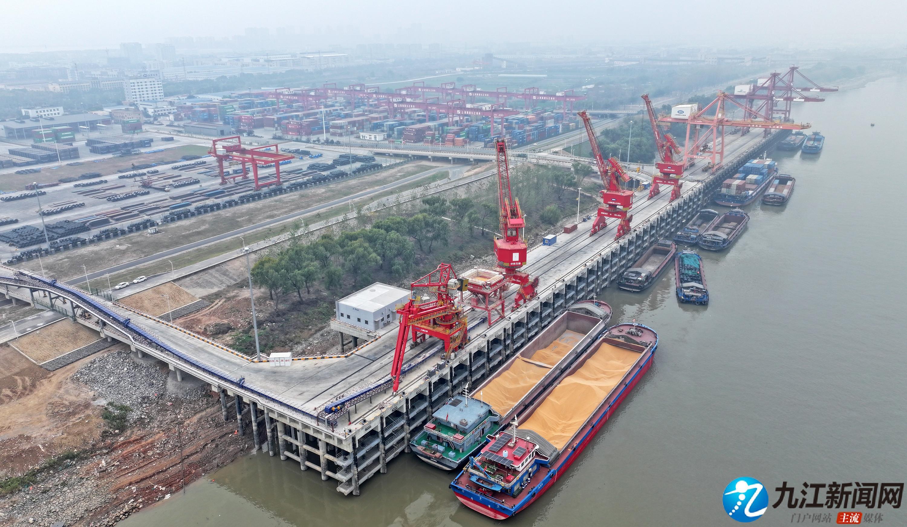 近日,位于九江经开区的上港集团城西港区集装箱码头一片繁忙的作业景象,堆场内的集装箱层层堆叠,一艘艘货轮在泊位间有序穿梭。集装箱码头旁便是今年刚投运不久的多用途和滚装码头,同样是货轮频靠、繁忙有序。码头通过优化多式联运通道和提升通关效率,有效促进了物流效率的提高,频繁的货运活动展现出强劲的发展势头。(九江日报全媒记者 刘家 摄)