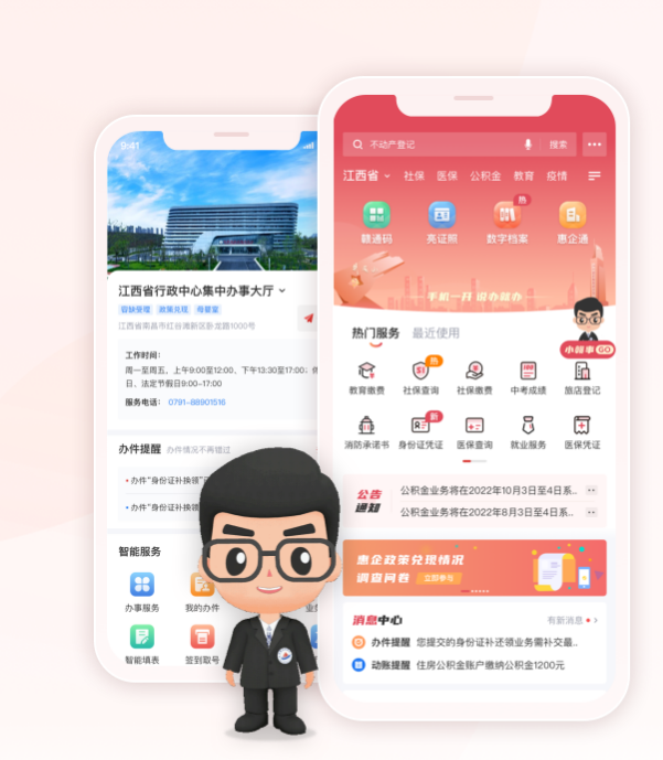 “赣服通”成为群众口袋里的“政务服务大厅”,打开手机就能办理大部分的高频事项,智能助手“小赣事”还可以自动答疑、引导办理,用户突破5300万人,服务能力走在全国前列。