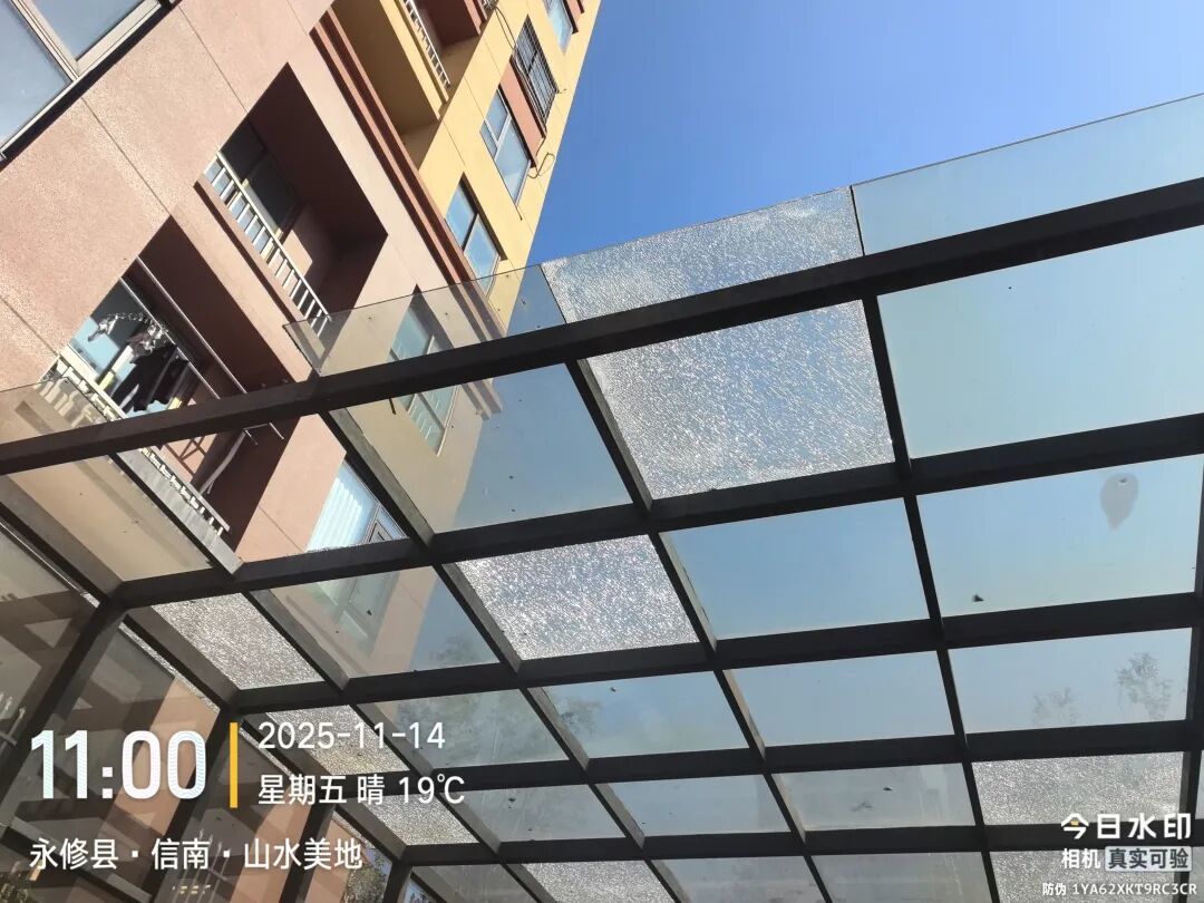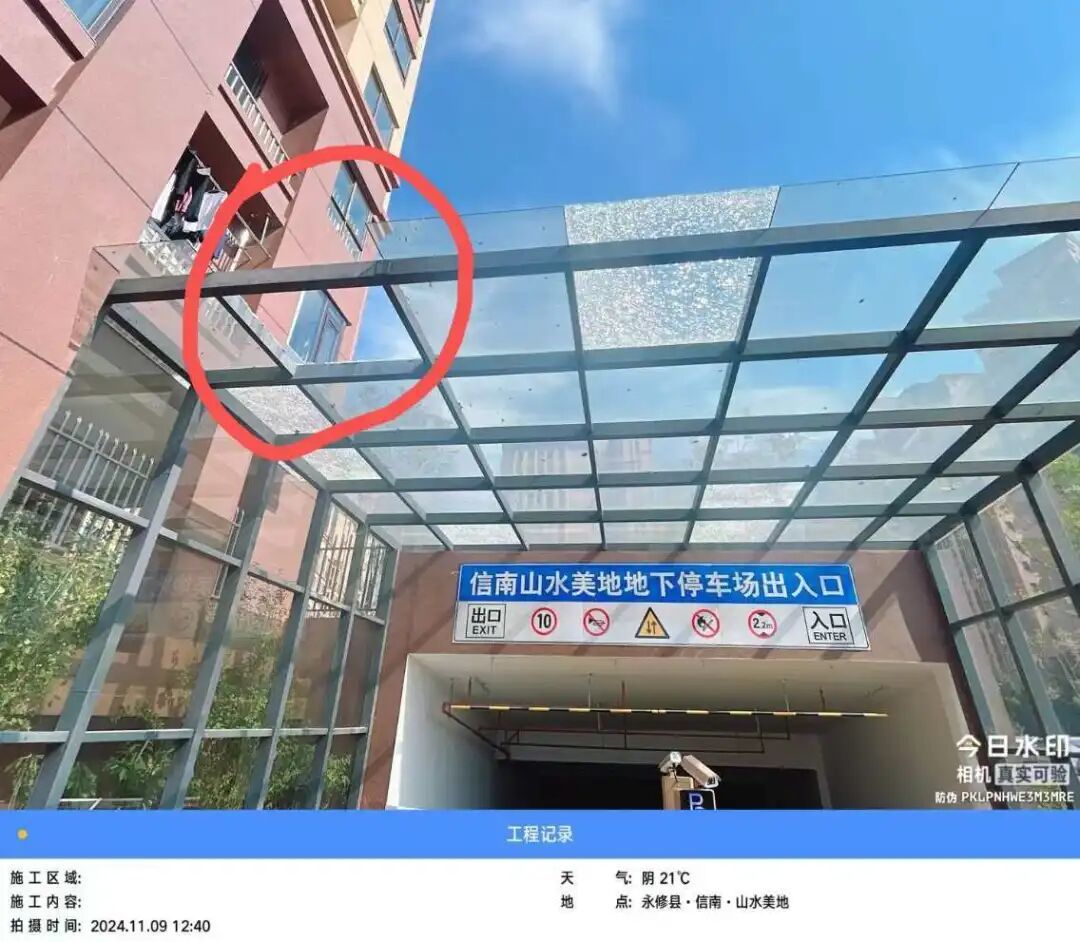 1.调查情况: 我局在2025年12月15日收到山水美地小区业主反映的问题后,立即组织房地产市场监管股联合物饰办召集物业公司、开发商赴现场勘察。 山水美地小区22栋地下车库出入口上面的钢化玻璃存在破损、缺失情况属实。