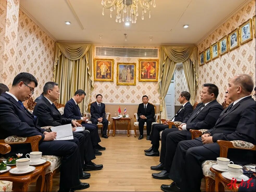 在泰国,黄喜忠一行访问罗勇府,拜会罗勇府府尹德莱坡·翁德莱。双方就人文、旅游、农业、工业、商贸等领域合作深入交流。黄喜忠指出,今年正值中泰建交50周年暨“中泰友谊金色50年”,两国地缘相近、人文相亲,近年来两国元首密集互动,充分彰显了“中泰一家亲”的深厚情谊。罗勇府地处泰国东部经济走廊核心区域,区位优势突出,与赣州发展需求相通、合作潜力巨大,希望双方进一步加强产业协作、深化开放合作、密切人文交流,为共建中泰命运共同体贡献更多地方力量。