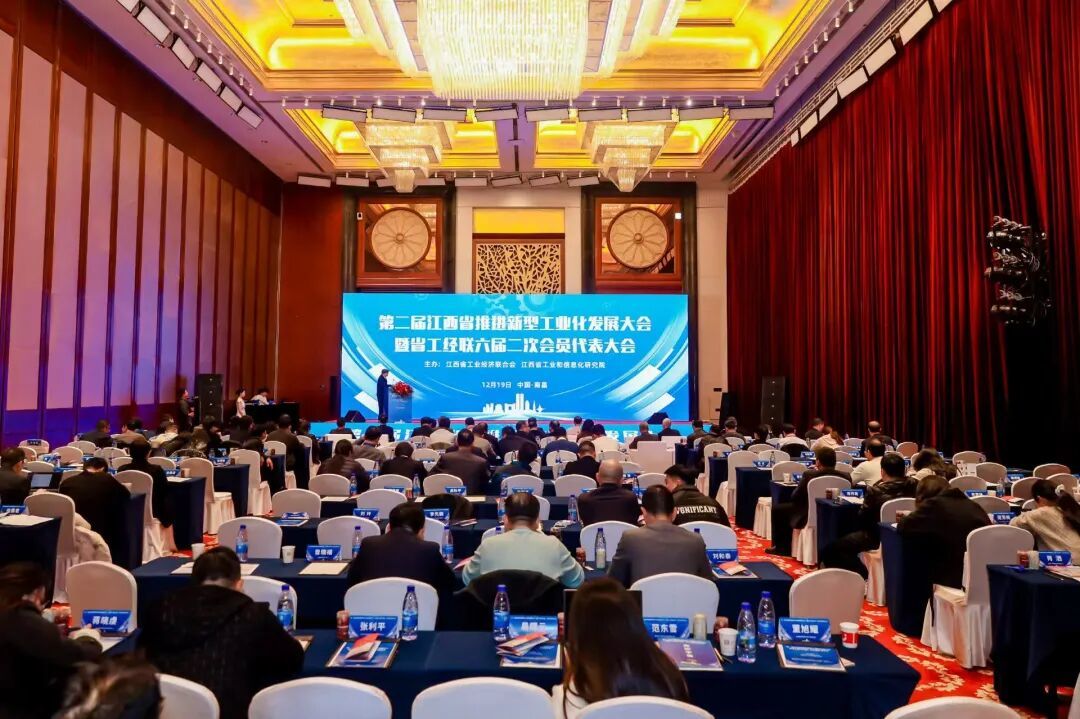 12月19日,第二届江西省推进新型工业化发展大会与江西省工业经济联合会(以下简称“省工经联”)第六届理事会第二次会员代表大会相继在南昌召开。两场会议紧扣工业强省战略实施、新型工业化推进、产业集群培育等核心议题,汇聚政府领导、行业专家、企业代表等多方力量共商发展大计,为江西工业经济高质量发展注入强劲动能。全省工信系统、工经联系统及会员企业、重点骨干企业代表共计480余人次参会。