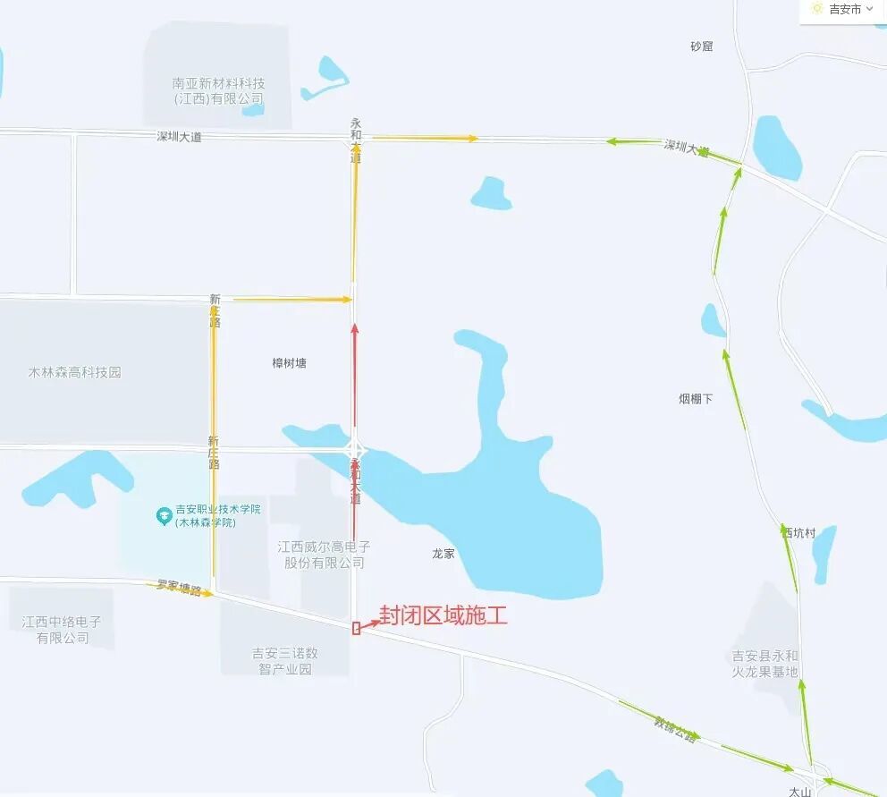 2.吉安北大道君华大道路口至吉阳大道路口出城方向道路施工,全吉安北大道施工预计由2025年2月28日至2026年12月31日。