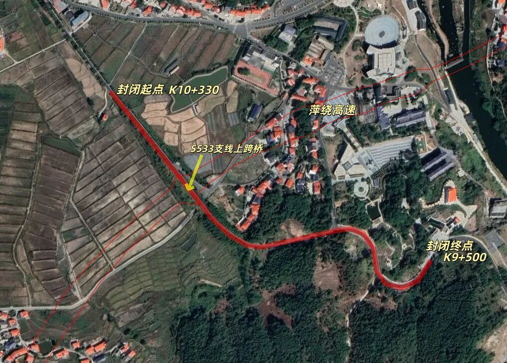 施工路段:S533省道山口岩段(K9+500-K10+330),2025年12月17日-2026年6月30日(全天24小时封闭)。