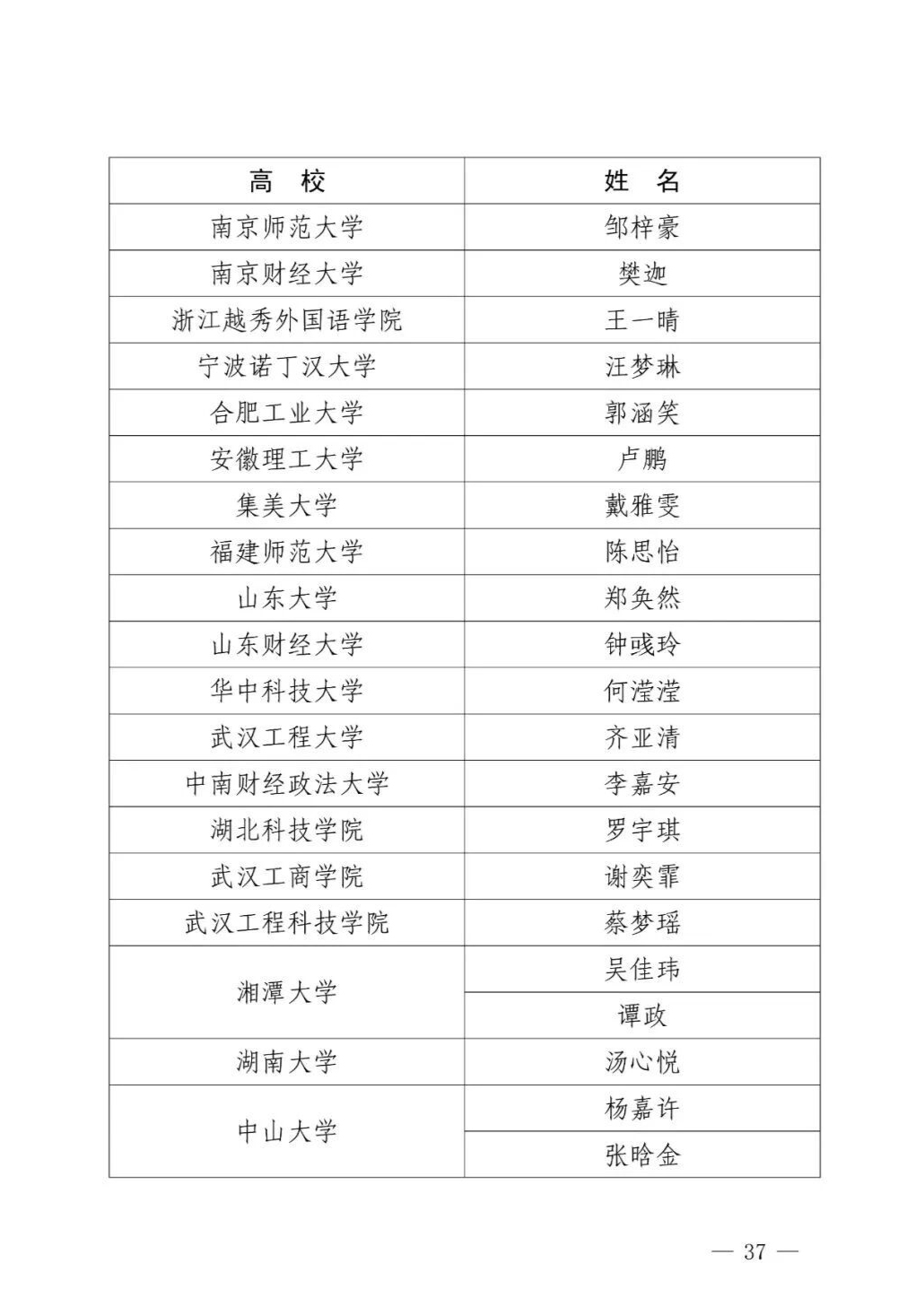 获奖名单如下: