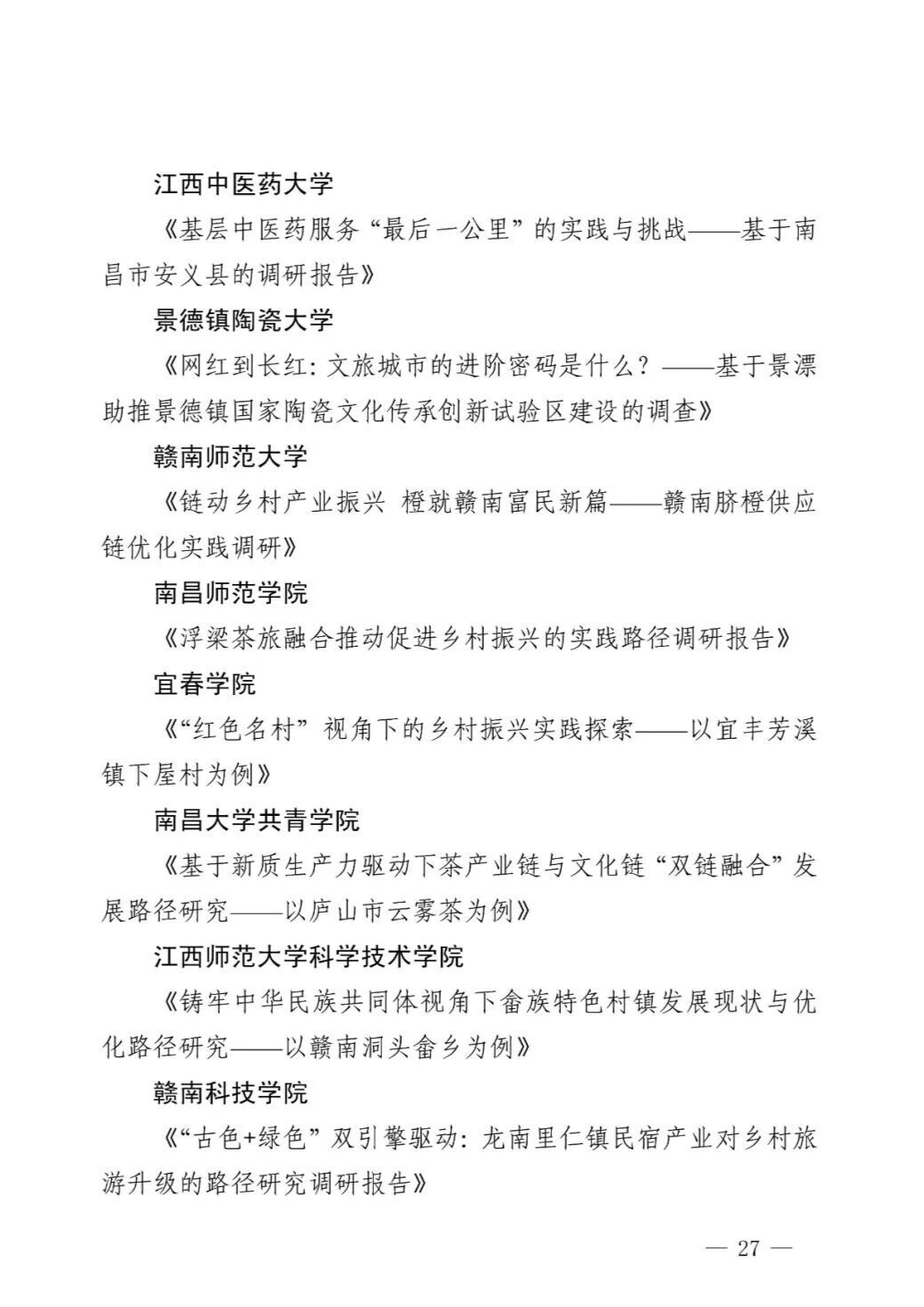 大江新闻讯 夏雨欣 全媒体记者查婧雨报道:青春在赣鄱大地绽放实践之花!12月22日,2025年江西省大中专学生志愿者暑期“三下乡”社会实践活动获奖名单正式出炉,一批在基层一线挥洒汗水的青春集体与个人获得表扬。