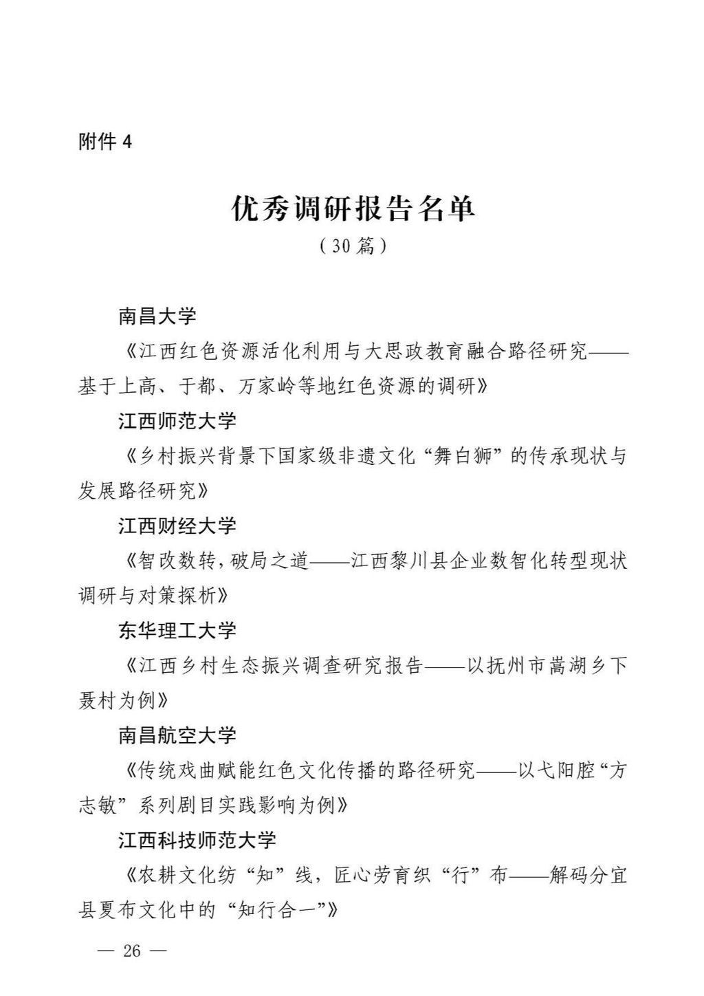 本次评选共涌现出52个优秀单位、174支优秀团队、299名优秀个人,并遴选出30篇优秀的调研报告、15件生动的新媒体作品及129名“扬帆计划”实习专项优秀个人。从理论宣讲到科技兴农,从支医支教到产业调研,青年学子们的足迹深入乡野巷陌,用脚步丈量省情民情,将论文写在红土地上,展现出新时代江西青年挺膺担当、奋发有为的蓬勃风貌。
