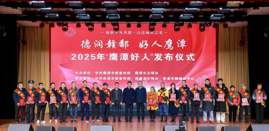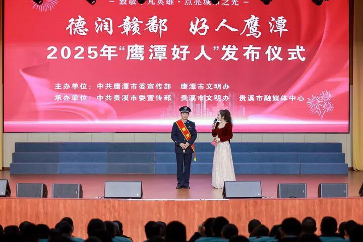 12月25日,“德润赣鄱 好人鹰潭”2025年“鹰潭好人”发布仪式在贵溪举行。本次活动旨在表彰先进典型,传承中华美德,为城市文明注入精神力量。