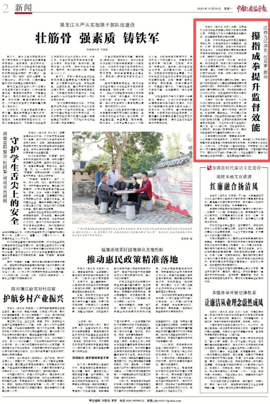 九江市深化运用“纪巡审”联动机制,市纪委监委、市委巡察办和市审计局通过巡前摸排廉政风险、协作配合精准发现问题,建立“问题线索双向移送、整改成果双向验证”机制,实现从单兵作战到协同作战的转变。