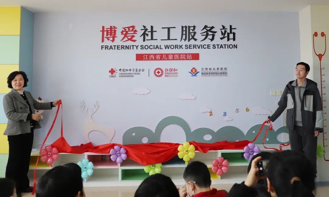 12月30日下午,江西省首个博爱社工服务站揭牌仪式在江西省儿童医院红谷滩院区小儿心脏病治疗中心举办,中国红十字基金会生命教育项目办主管杜博纶、院领导张萍共同为服务站揭牌。仪式由团委书记、医务社工与志愿者服务管理部副主任黎忠良主持,住院患儿及家长和相关科室人员约30人参加。