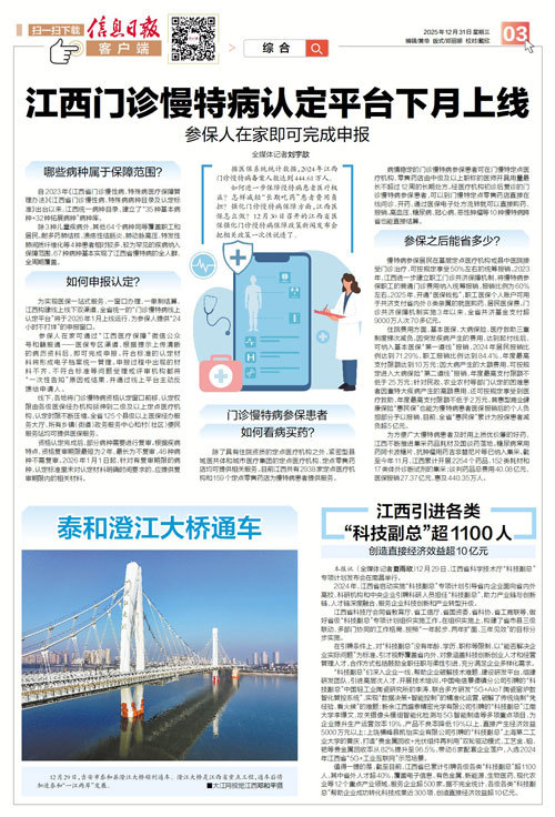 为实现医保一站式服务、一窗口办理、一单制结算,江西构建线上线下双渠道,全省统一的“门诊慢特病线上认定平台”将于2026年1月上线运行,为参保人提供“24小时不打烊”的申报窗口。