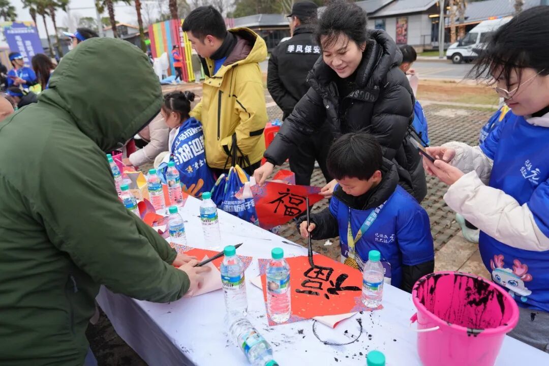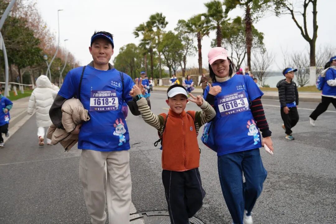 新年氛围感,在八里湖亲子迎新跑的打卡区拉满!家长和萌娃们齐齐上阵,摆 pose、签名墙留言、比剪刀手,快门声此起彼伏。奔跑前的欢乐定格,每一张笑脸都在诉说:“这场和家人并肩的迎新之旅,超有意义!”