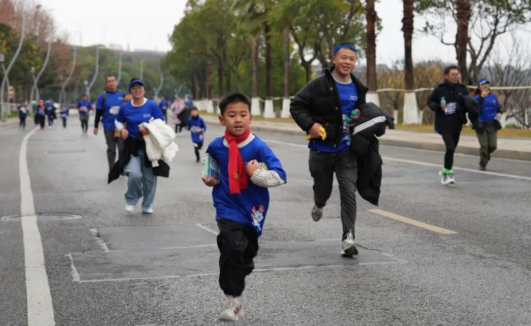 5.2公里的路程对许多孩子来说是一次挑战。赛道上,既有父母牵着孩子稳步前行的温馨画面,也有亲子携手冲刺的活力瞬间,欢声笑语洒满全程。