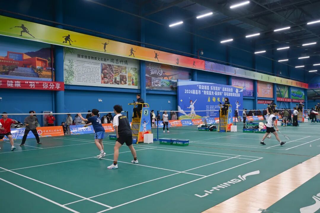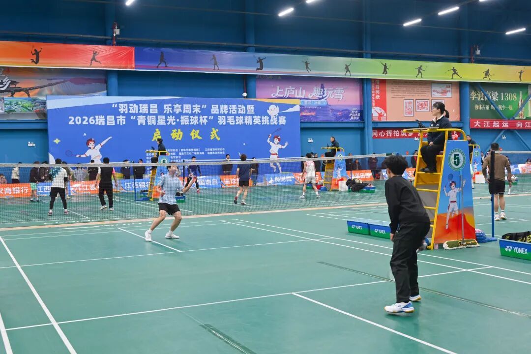 2026年新年第一天,瑞昌国际羽毛球学院人声鼎沸、热力升腾!“羽动瑞昌 乐享周末”品牌活动暨2026瑞昌市“青铜星光・振球杯”羽毛球精英挑战赛正式启动,首期来自全国14个省份的600余名羽球爱好者齐聚一堂,在球拍挥舞间感受热爱与活力。
