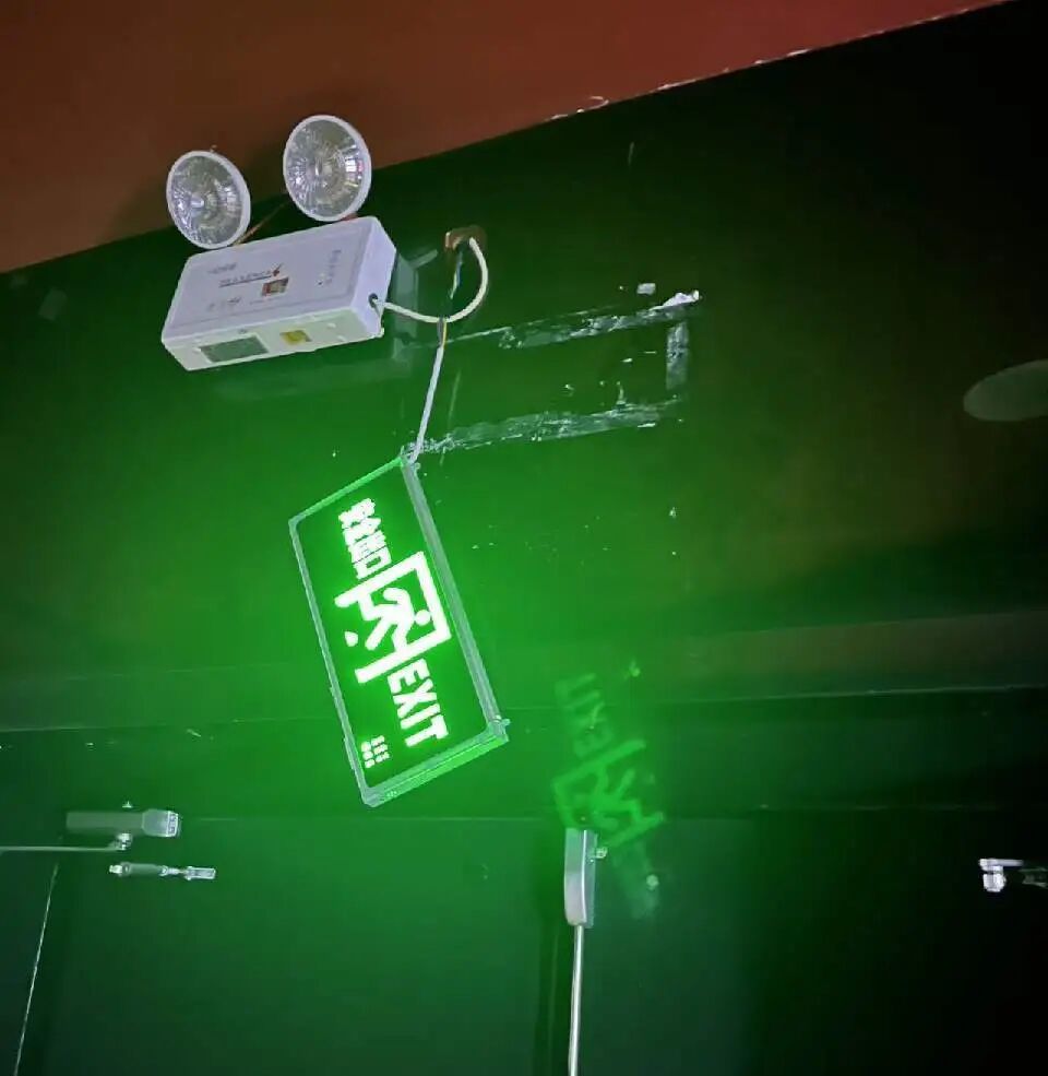 1. 通道处、影厅内安全出口指示标志脱落;南侧后门安全出口指示标志脱落;
