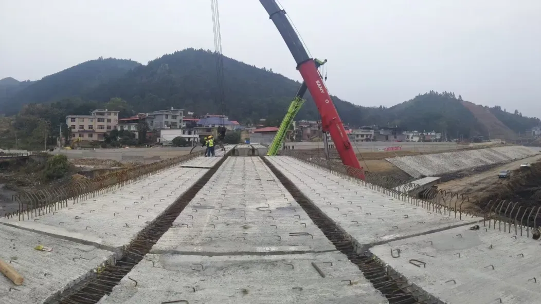 作为横跨东源水库的重要通道,王陂潭大桥的建设始终备受关注。吊装现场,技术人员和施工人员紧密配合。他们采用大型汽车起重机进行吊装作业,严格按照施工规范,精准控制每一片梁的起吊、平移和落位。最终在确保安全的前提下,高效完成了全部预制梁的架设。