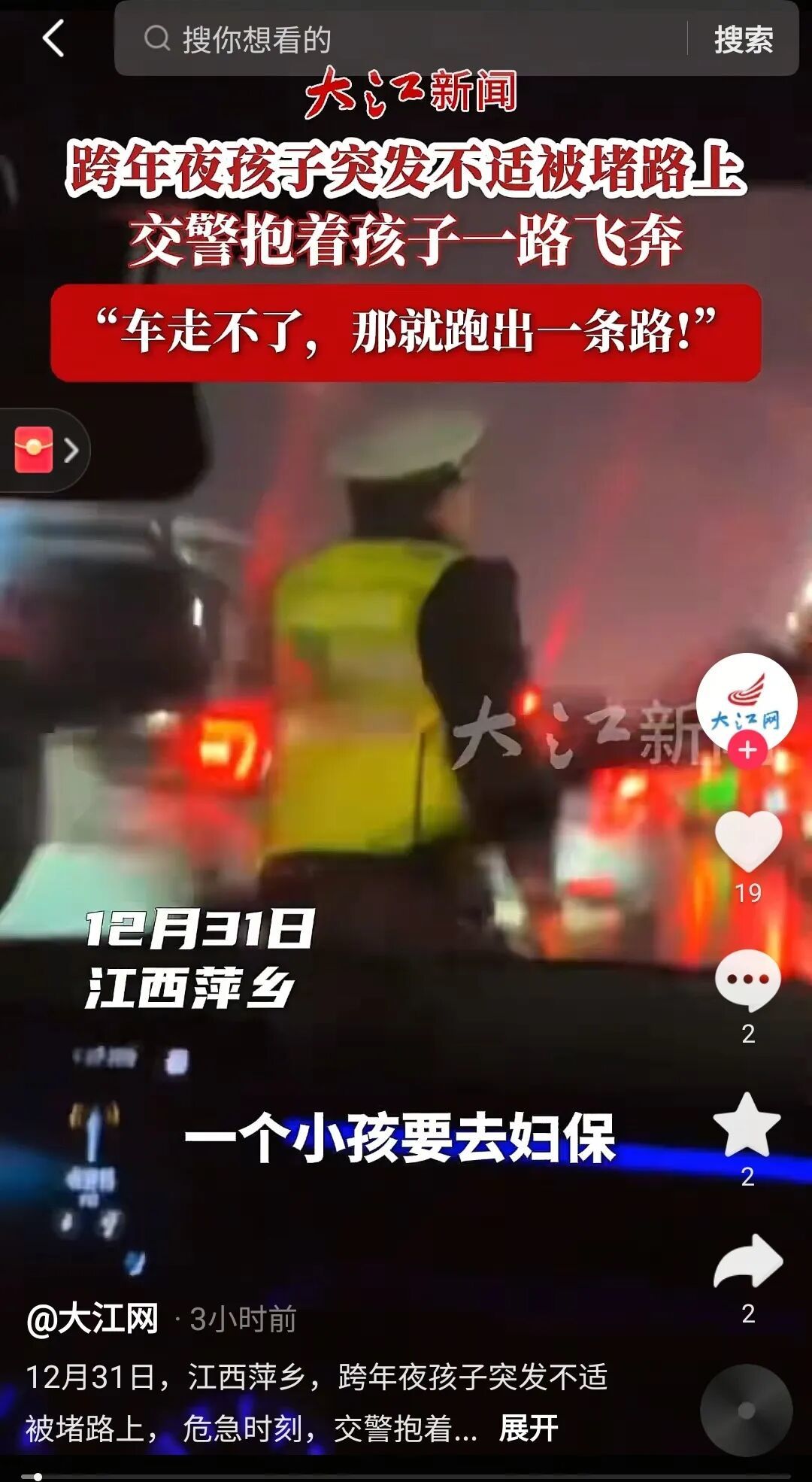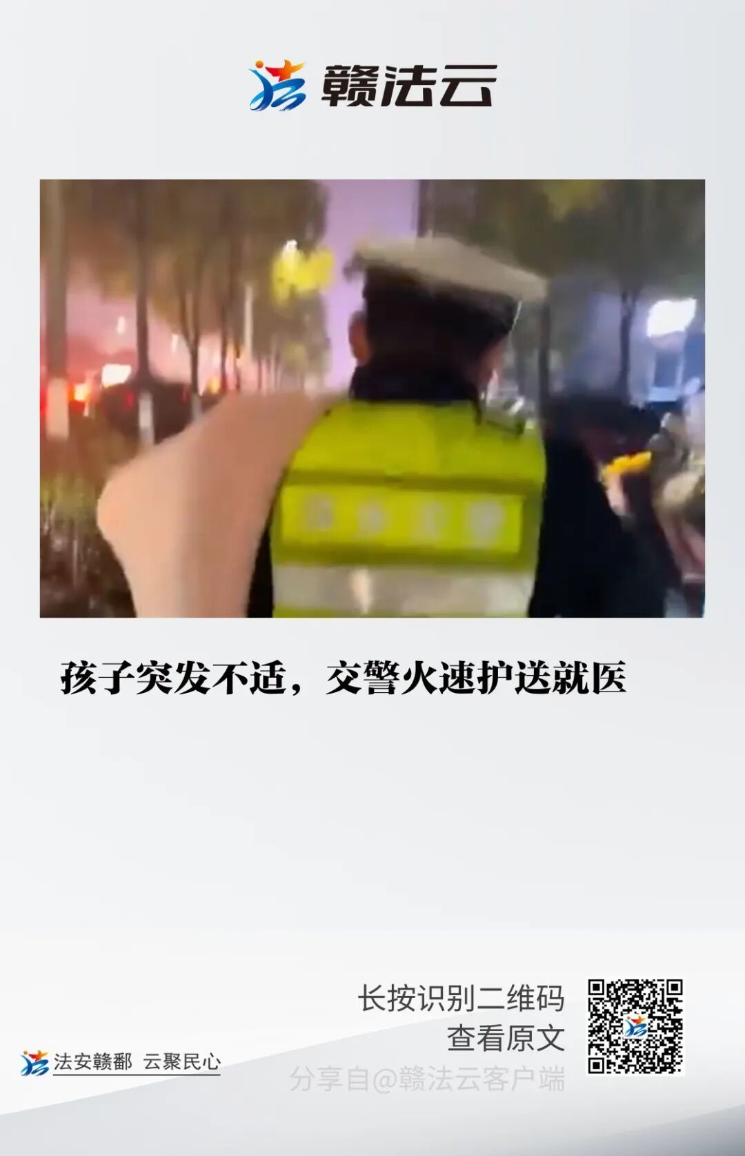 执勤交警怀抱突发不适的幼童
