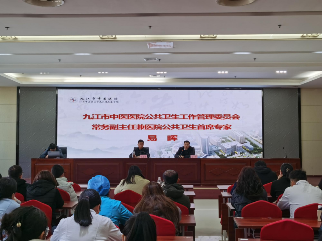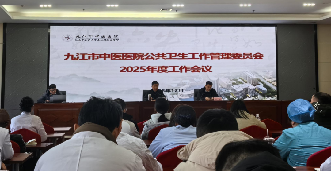 为加强医院公共卫生工作的统筹协调与规范管理,提升突发公共卫生事件应对能力,2025年12月26日,九江市中医医院召开公共卫生工作管理委员会2025年度工作会议,医院党委副书记、院长,委员会主任委员伍宏泽,医院党委委员、副院长,委员会常务副主任兼医院公共卫生首席专家易晖出席会议并讲话,委员会全体成员和临床医技科室兼职公共卫生监督员80余人参加了会议。
