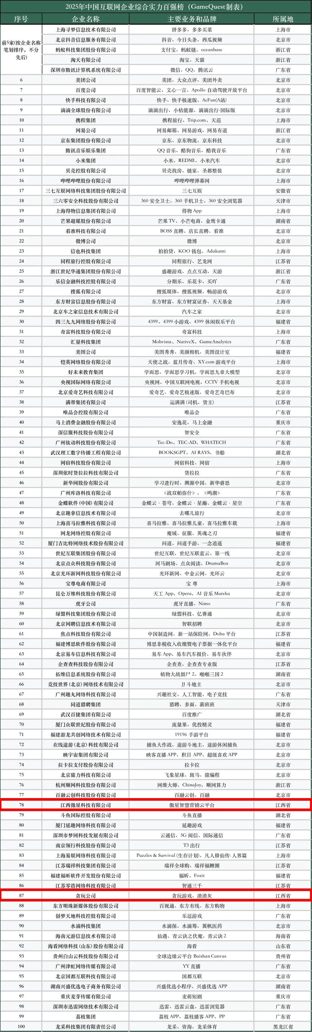 近日,中国互联网协会权威发布“2025年中国互联网企业综合实力前百家企业”名单,我区贪玩游戏、傲星科技两家企业双双登榜,为我区数字经济发展再添亮眼成绩。其中,贪玩游戏自2022年起已连续四年入围百强榜单,彰显出深厚的行业积淀与持续领先的竞争力;傲星科技作为新生力量,凭借扎实的综合实力、突出的创新能力,首次入围该榜单。两家企业同时获评,彰显了我区在培育科技型企业方面的积极成效,标志着我区互联网产业生态持续优化,骨干企业与新生力量协同共进,正共同推动区域数字竞争力不断提升。