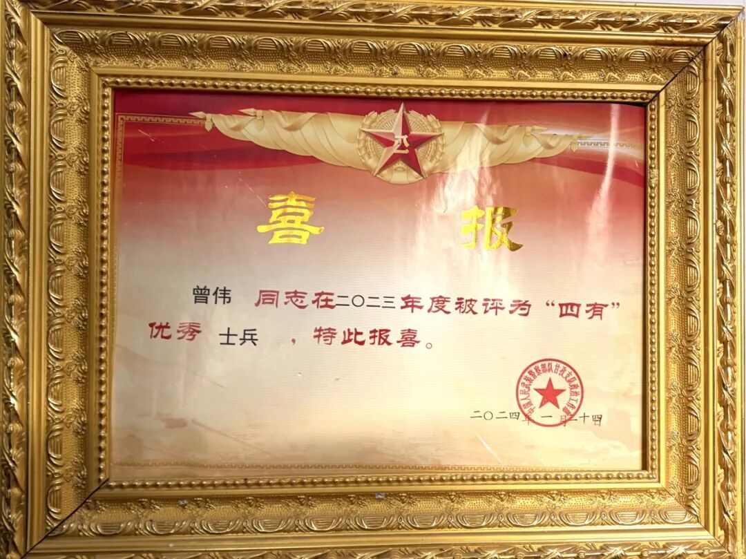 据了解,90后曾伟凭借突出的表现,2020年被评为'四有'优秀士兵;2023年被评为'四有'优秀士兵;2025年因在工作中成绩突出,荣获平时战备训练三等功。