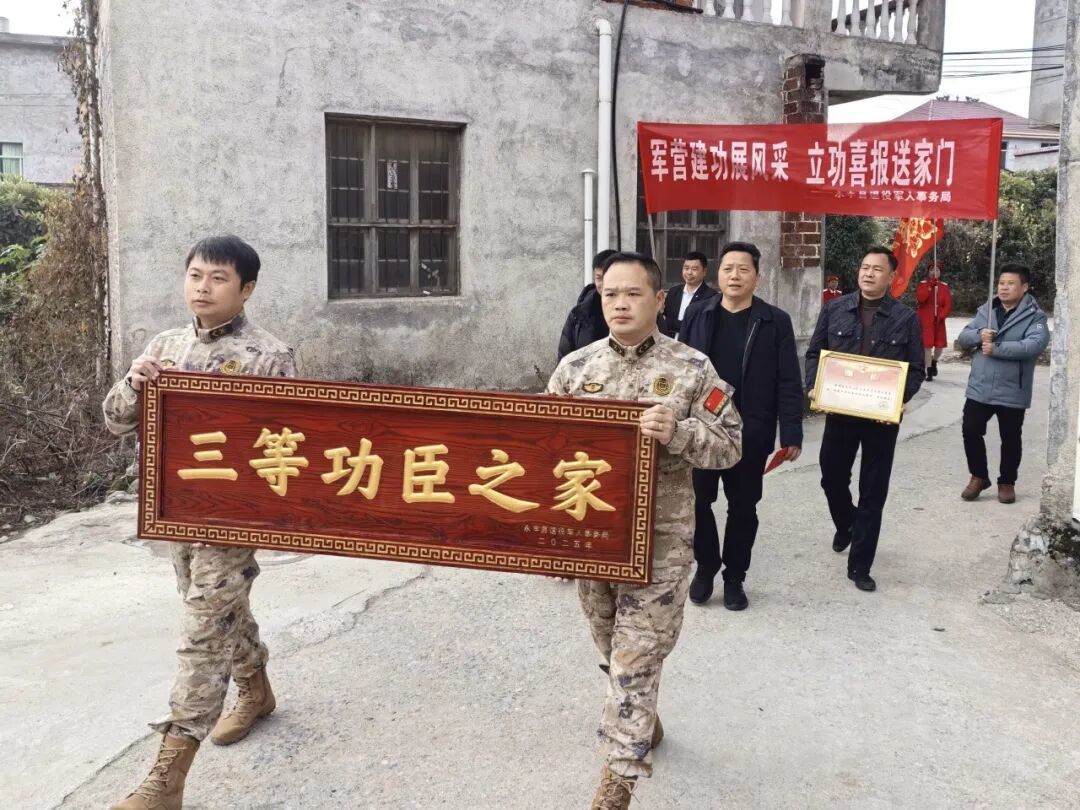 近日,陶唐街头锣鼓喧天,吉安市永丰县退役军人事务局和陶唐乡党委、政府共同为荣立个人三等功的现役军人曾伟同志家属送上立功喜报,并与军属亲切座谈,详细询问了军属生活状况、身体情况和实际需求,感谢他们为国防事业作出的贡献,为部队、为祖国培养了优秀的军人,为家乡争得了荣誉。