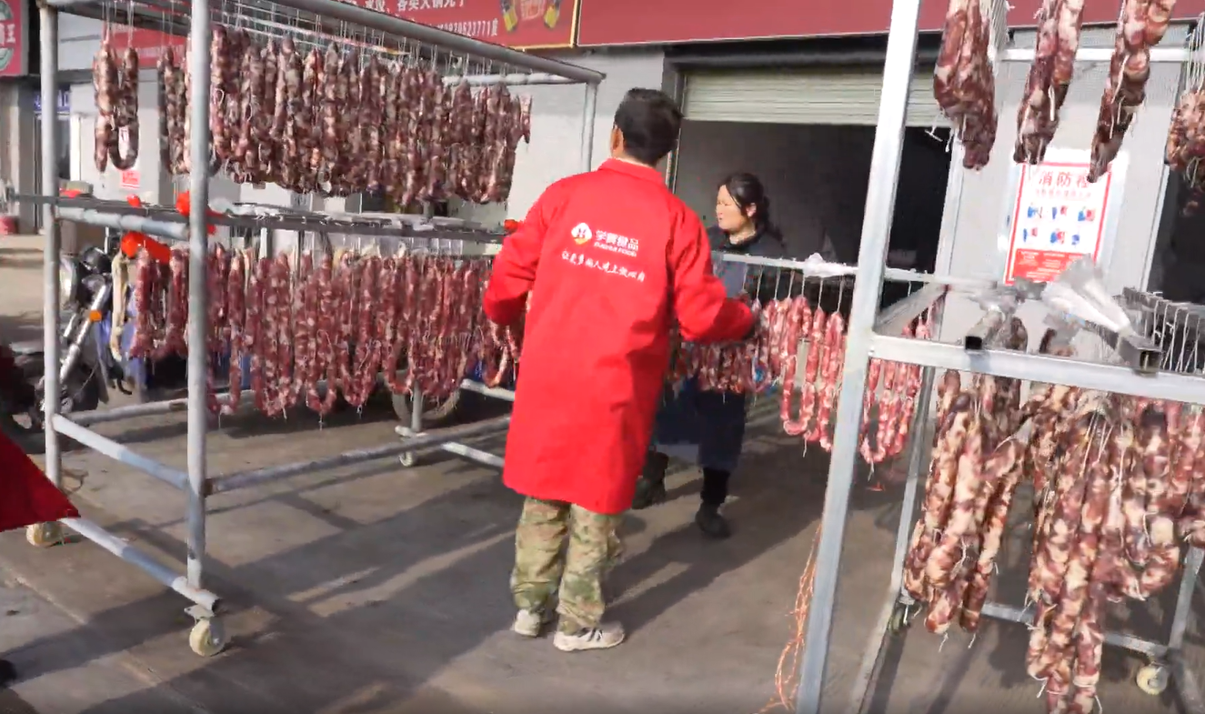 这段时间,高安市学辉猪肉店负责人周瑾每天起床第一件事,便是选购猪肉。周瑾选取当地农户喂养的猪制作腊制品,确保了腊制品的品质和口感。灌好的新鲜香肠经过风干,然后转移到阳光下自然晒干,再经过7至15天的风干,香肠由白变红,香气四溢,油光红润,利于储存。