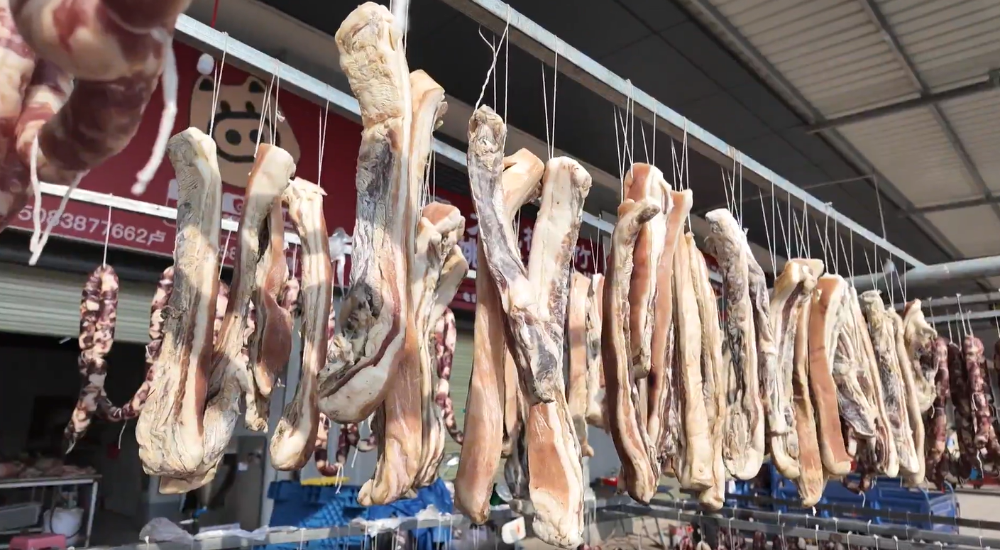 俗话说:“无腊不成冬,无腊不成年。”腊味是餐桌上不可或缺且最有年味儿的美味佳肴。随着春节临近,香肠、腊肉等腊制品也进入生产销售的黄金期,街头巷尾随处弥漫着腊味的香气,成为市民们必备的抢手年货,带动了当地节前消费市场的火热。