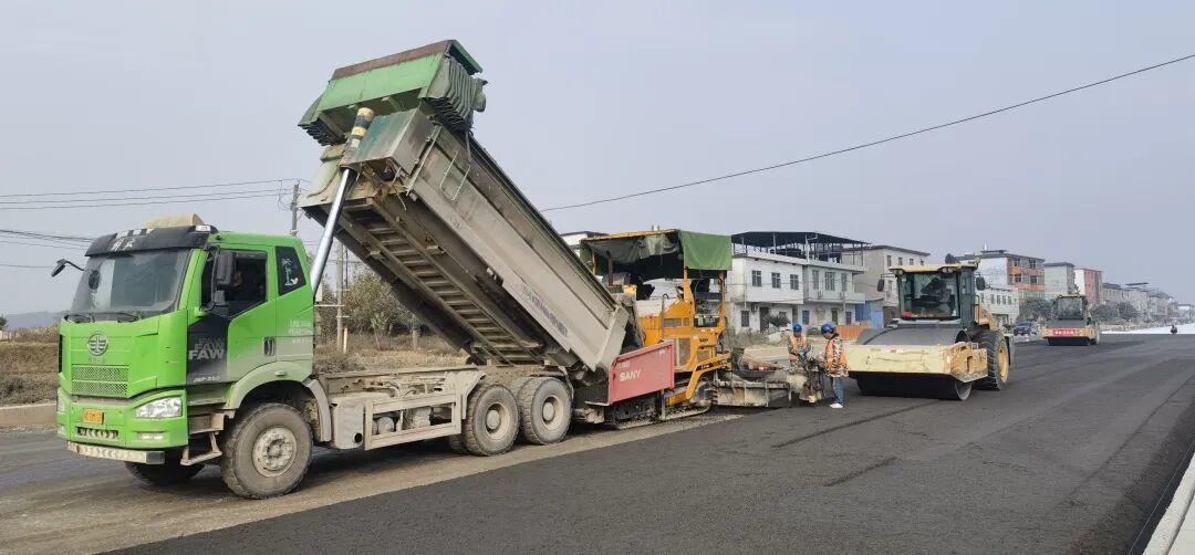 “本项目于2024年9月开工,路基工程在2025年10月完成施工,目前已全面进入路面施工阶段,已完成全线级配碎石底基层、水稳下基层施工,现正进行大粒径上基层施工。我们加班加点,计划在春节前基本通车,有望在6月全线竣工,比原计划提前3个月。”S221上高塔下至石蚁坳段一级公路改建工程项目部总工黄钊说。