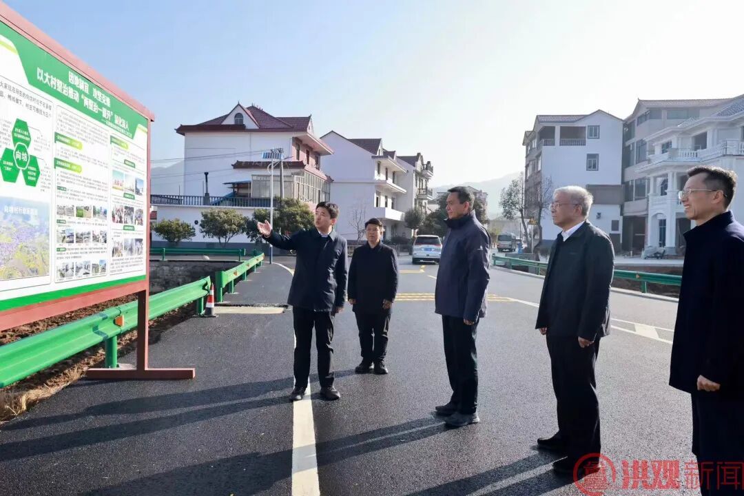 石鼻镇向坊村是安义县人口最多、村庄连片面积最大的行政村。该村聚焦“路通、水通、环境整洁”三大目标,将村内主干道路拓宽,实现全域“白改黑”,“户户通”水泥路;整治门塘、沟渠,让“臭水沟”变成清水渠,实现水系互联互通;拆除破旧房、杂房禽舍,村庄面貌焕然一新,村民们趁着晴好天气,晾晒腊味、筹备年货。李红军实地察看村容村貌,与村干部深入交流,详细了解基层党建、道路拓宽、植绿增绿等情况。李红军指出,向坊村有山、有水、有田,生态环境优美、农业资源丰富。要加强农村基层党组织建设,提高队伍凝聚力和战斗力,带领村民发展经济、搞好乡村治理,吃上幸福农家饭,走上共同富裕路。要扎实推进共建共治共享,激发村民投身美丽乡村建设的热情,组织大家管好房前屋后、屋里屋外,建立完善常态长效管护机制,推动村庄变“一时美”为“持久美”。