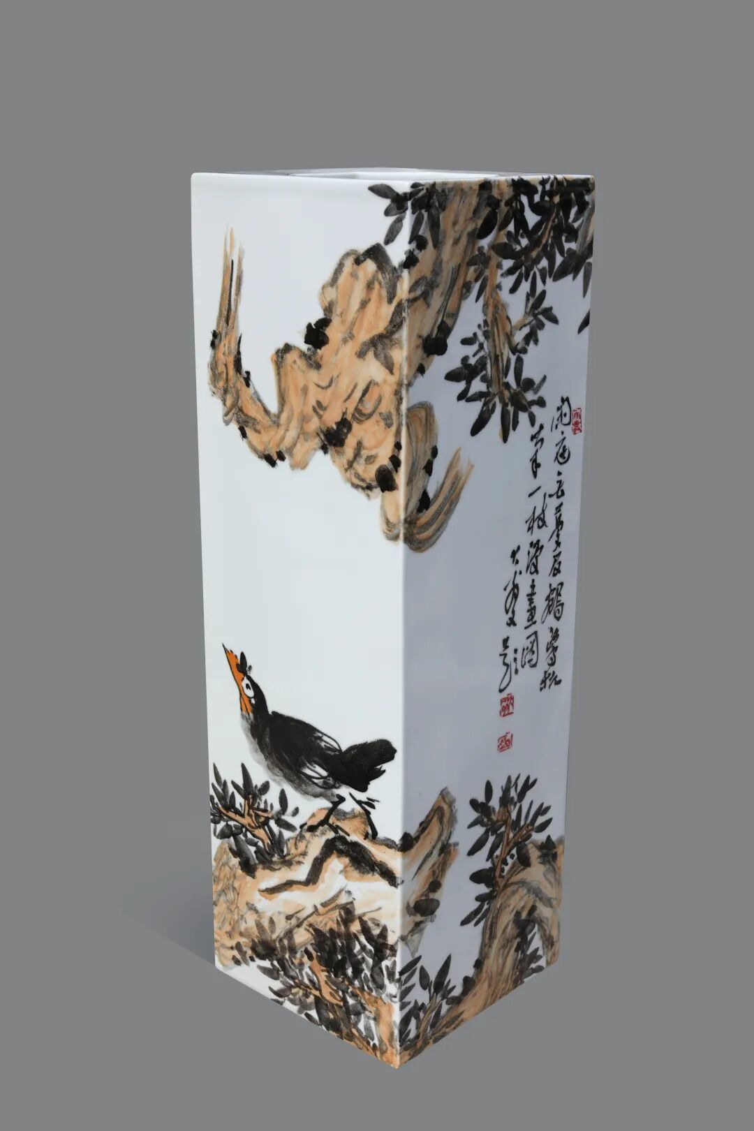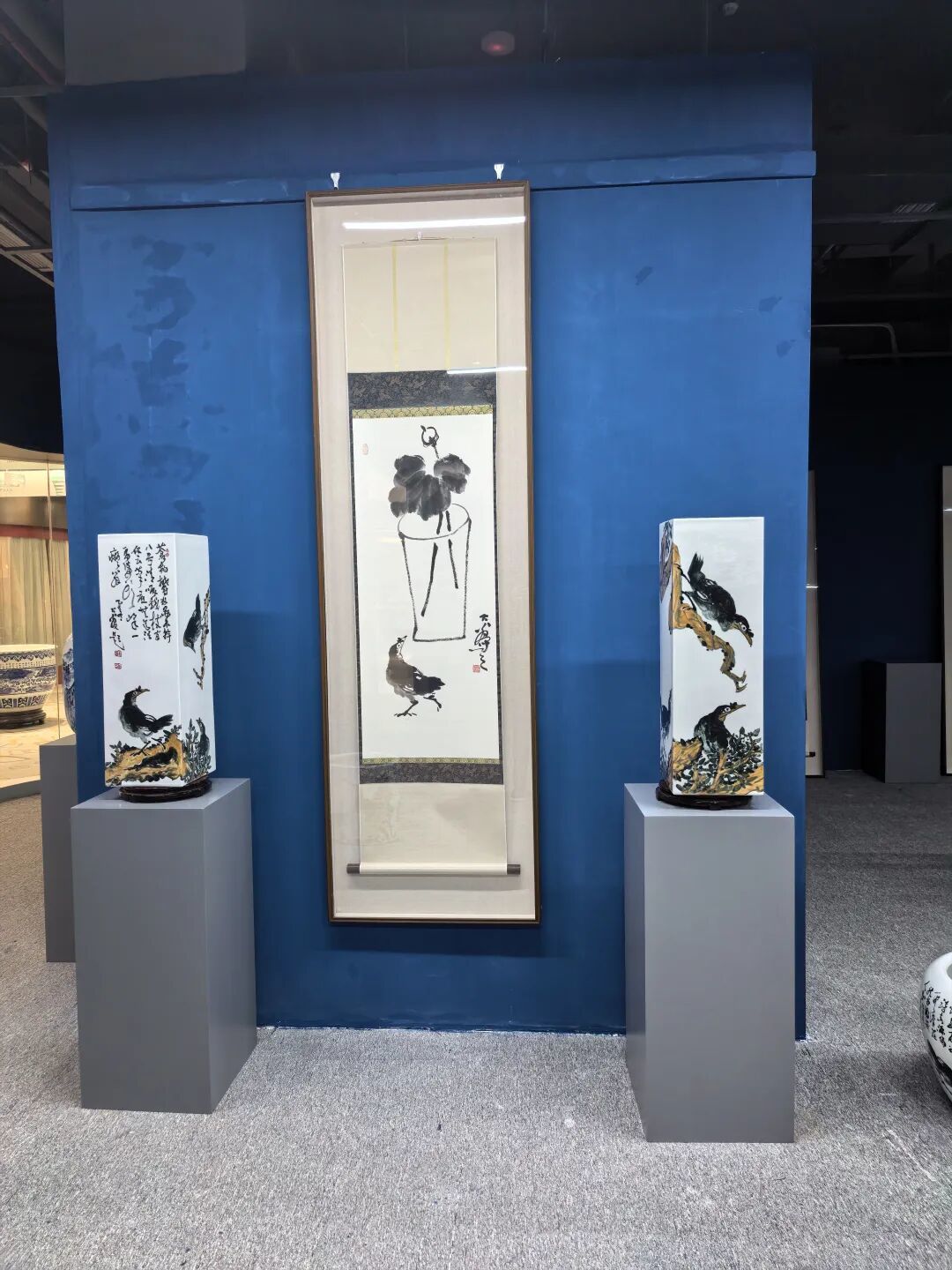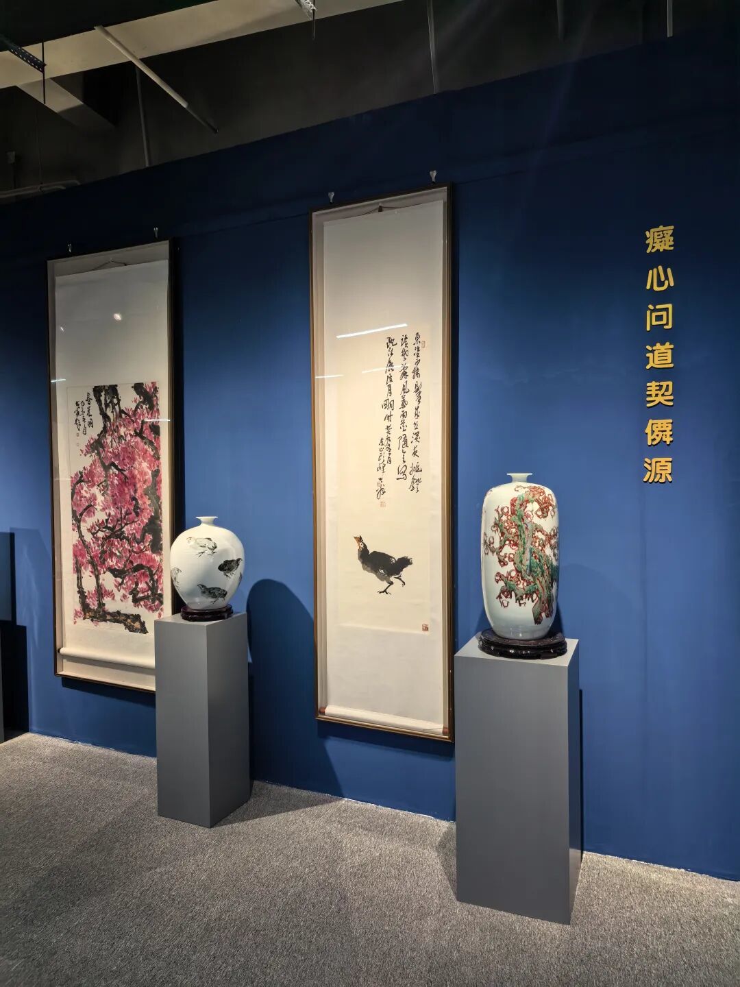 也曾遇过创作瓶颈时的迷茫,却始终不愿为迎合市场而扭曲笔墨;见过世态炎凉的薄情,依旧选择以真诚之心待人。这份坚守,渐渐成了刻在骨子里的本能,也修炼出独属于自己的生命气象,让笔下的画作,都有了可触摸的温度。朋友曾问我:“你已然颇有成就,何苦对自己这般严苛?”我默然,只在一幅新作上题下几行字:以书法为骨,国画为魂,陶瓷为体,以求纸与瓷互通,书画器三位一体。于我而言,学习永远在路上,所谓的成就,不过是在艺术殿堂的漫漫长夜里,瞥见了门缝中透进的一缕微光。