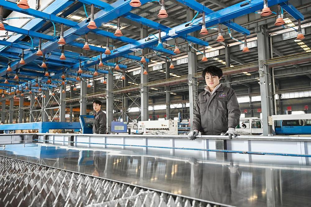 日前,位于袁州产业园的宜春环虹金属新材料有限公司生产车间内,工作人员正操作自动化设备生产铝单板。近年来,袁州区大力推动园区企业淘汰落后产能,提升技术与装备水平,助力制造业企业进行智能化、数字化转型升级,使传统产业焕发新活力。(本报记者 李亦杰 摄)
