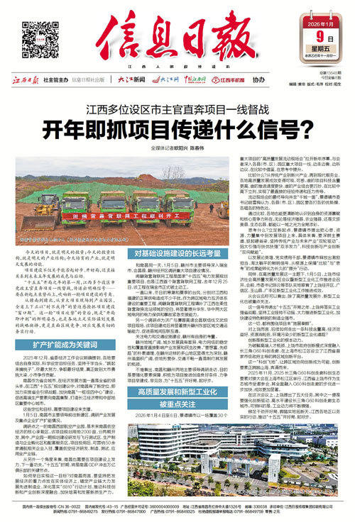 “十五五”开局之年的第一周,江西多个设区市党政主官直奔项目一线督战,传递出明确信号——要在新起点乘势而上,吹响新一轮项目建设的号角。